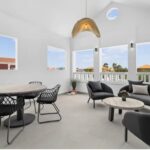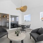 The apartment offers comfortable space outside and inside. The terrace offers a seating area and dining table.