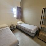 The villa has 2 bedrooms. The main bedroom has a queen size bed. The second bed room can be set up as a queen size bed or 2 separated single beds.