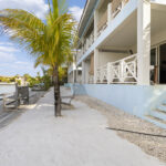 Located in Ocean Breeze Boutique resort, known for its lush garden with a multitude of palm trees and tropical flowers.