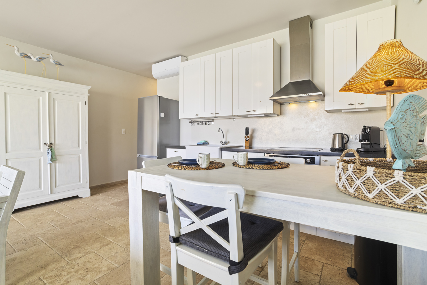 The large table is your favourite spot enjoy the the water view or to work at. The apartment has fast WiFi connection, air conditioning in all rooms, and a private terrace where you can enjoy the views.